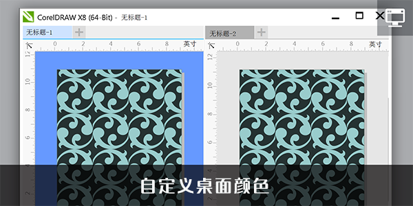 CorelDRAW Graphics Suite X8 提供靈活的桌面顏色方案選項。您可以在 CorelDRAW 中更改繪圖頁面周圍區域的顏色,或在 Corel PHOTO-PAINT 中更改圖像以設置每個項目的最佳環境,降低總體工作區對比度,或者提高設計元素的清晰度。