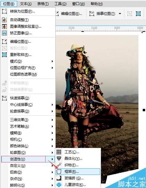2. 選擇位圖后,執行“位圖>創造性>框架”命令。