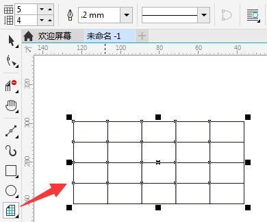 步驟二 在窗口里從左上角往右下角拉動,繪制“表格”,鼠標右鍵將表格“轉換為曲線”,然后將表格“取消組合對象”。