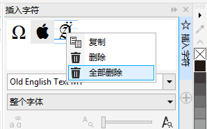 2. 面板以“Arial”字體為默認顯示,包含“所有字體”,您還可以在上面選擇自己需要的字符或圖形。