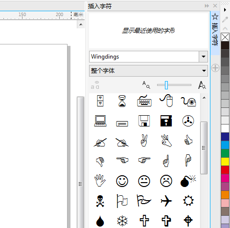 1. 打開CorelDRAW X8軟件,執行菜單欄中“文本>插入字符”命令,在界面右側會彈出“插入字符”面板。