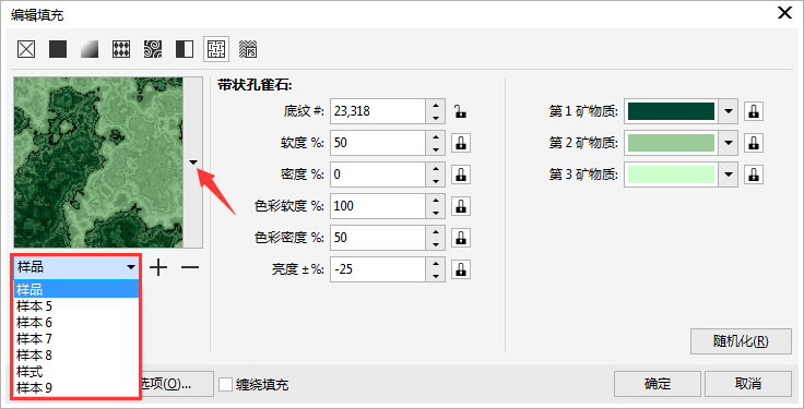 首先要繪制一個圖形對象,選擇要填充的對象,在工具箱中單擊“交互式填充工具”,在屬性欄上點擊“雙色圖案填充”右下角小黑三角,選擇“底紋填充”,則可將默認的底紋圖案應用到對象中。單擊“底紋庫”還可以選擇樣本分類。單擊“填充挑選器”選擇您所需要的任何圖案。