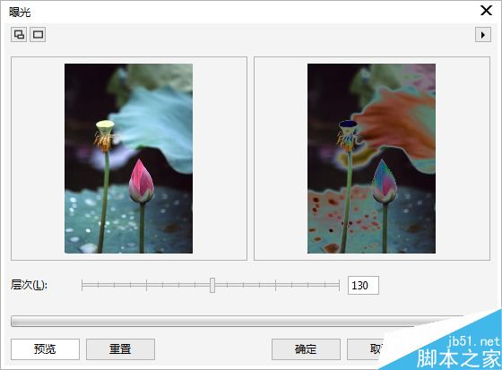 另外,在“位圖>顏色轉(zhuǎn)換”中的“曝光”濾鏡,可以將圖像制作成類似膠片底片的效果,進行顏色的反相。對比效果如下圖所示。