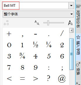 5. 從“整個字體”列表框中選擇心儀字體,選擇要插入的分數符號,直接拖拽到工作區域即可;或者把符號字符當做一個文本插入。使用文本工具,在頁面的空白位置上單擊一下,就會出現一個閃爍的光標,鼠標雙擊符號字符面板上的某個符號。