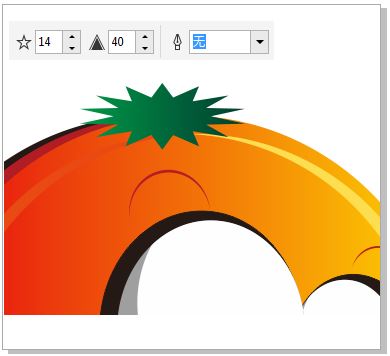 步驟十三、繪制多邊形 選擇工具箱中的“星形工具”繪制多邊形,在屬性欄中設(shè)置具體參數(shù),按快捷鍵f11填充漸變顏色,效果如圖所示。