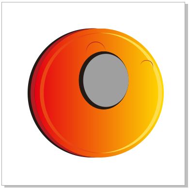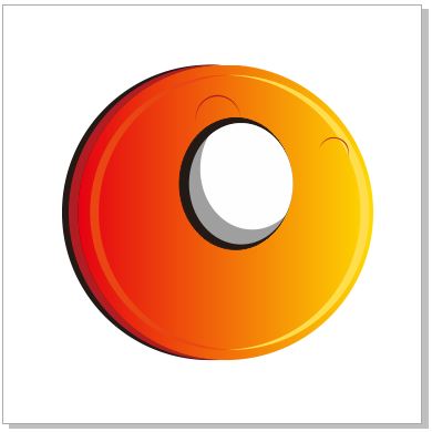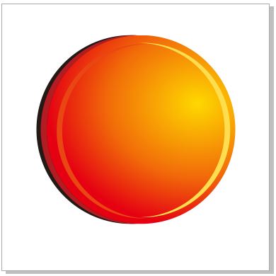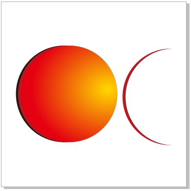 步驟四、填充圖形 將剪切剩下的圖形復(fù)制到圖像中的正圓上,按Shift鍵等比例縮小一點(diǎn),并填充顏色為(C:0,M:85,Y:96,K:0),得到以下圖像效果。選中半月圖形,復(fù)制一份,單擊屬性欄中的“鏡像”按鈕,將圖形水平調(diào)轉(zhuǎn)方向,填充顏色為(C:0,M:13,Y:75,K:0),效果如圖所示。