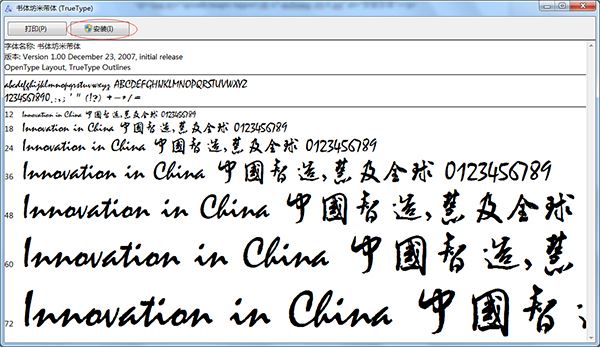 方法三:下載我們想要的字體,解壓壓縮包,雙擊打開下載好的字體,彈出的對話框中單擊“安裝”按鈕即可。
