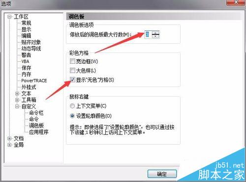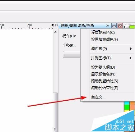 3、右鍵右邊調(diào)色板三角箭頭,選擇自定義