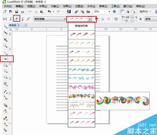 6、再給信紙加些點綴,用cdr自帶的藝術筆工具畫,按圖示找到這個工具。具體點綴怎么弄好看,你可以盡情發揮吧!