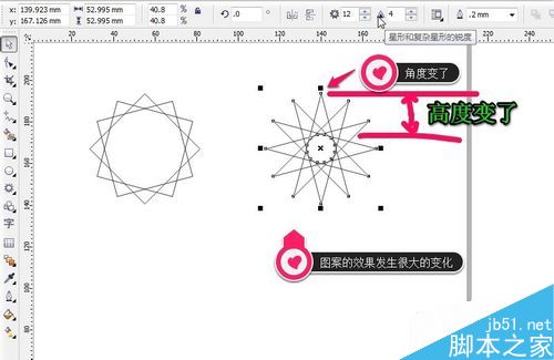 3、復(fù)雜星形的銳度的調(diào)節(jié)也可以改變圖形的