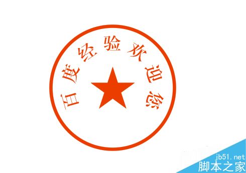 7、將外框、文字和星形填充成紅色,完成印章的制作過成
