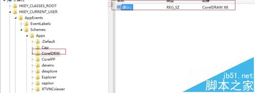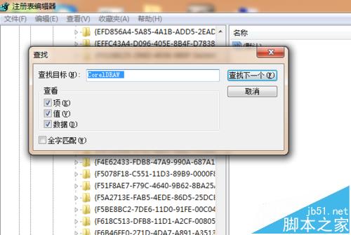 2、在注冊表中按ctrl+F打開查找-->輸入CorelDRAW -->刪除里面所有的coreldraw里的文件