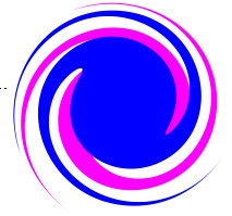 6、更改圖像顏色:選中旋轉后的復制對象,在調色板上單擊藍色,更改其填充顏色,完成標志的制作,效果如圖所示:
