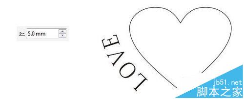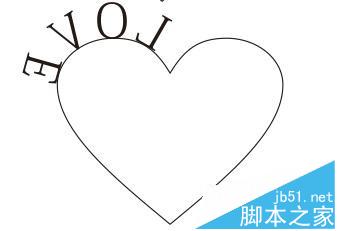 2、將光標移到圖形的輪廓線上,當光標右下角顯示曲線圖標~時,單擊鼠標左鍵,此時光標大半在輪廓線外,小部分在輪廓線內。您可以輸入文本(本文以LOVE為例),屬性欄上出現相關選項。