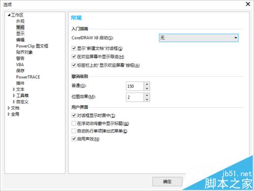 4、這是只需要將“CorelDRAW X8啟動”模式,從“無”改為“歡迎屏幕”就可以了。