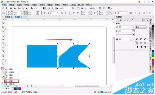 3、調和工具。一個形狀或者顏色向另一個形狀或者顏色漸變過去。(如圖,藍色向紅色漸變過去)