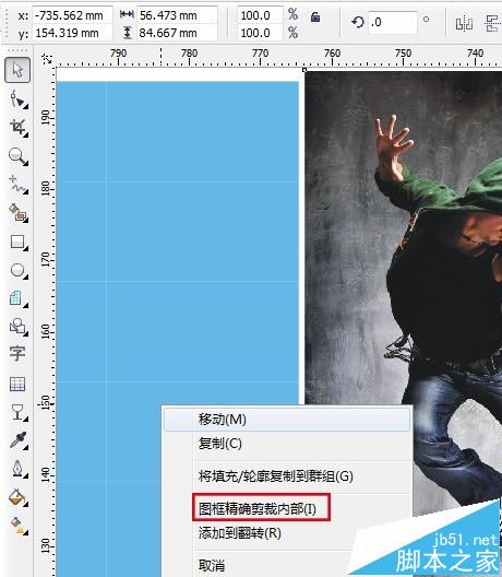 4、將圖片按住鼠標(biāo)右鍵拖拽到圖紙中,松手時(shí)出現(xiàn)“圖框精確剪裁內(nèi)部”。