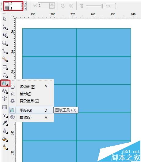 2、找到工具箱中的圖紙工具,并且先設(shè)置好圖紙的行數(shù)、列數(shù)。必須是先設(shè)置后繪制才可以。