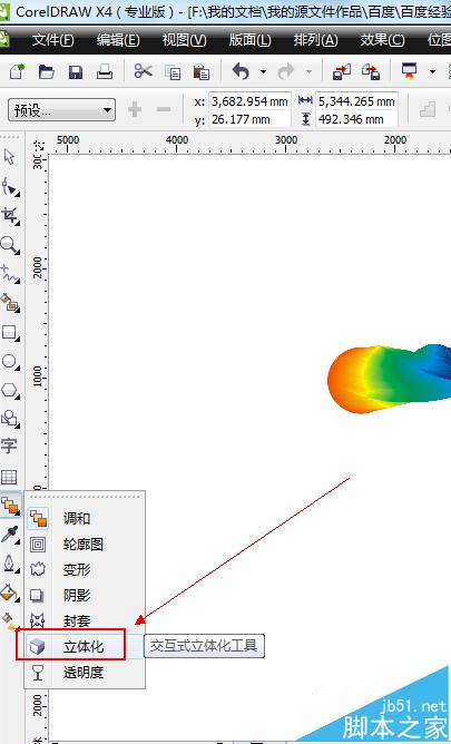 2、如圖所示,在彈出的下拉列表菜單中,我們點擊箭頭所指的“立體化”這一項。