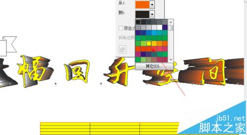 8、如圖所示,在彈出的下拉列表菜單中,我們點擊箭頭所指的這個黃色。