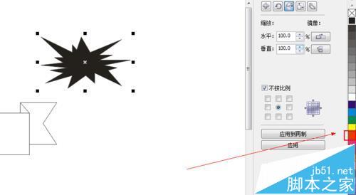 10、如圖所示,我們鼠標右擊點擊箭頭所指的紅色為圖形描邊紅色。