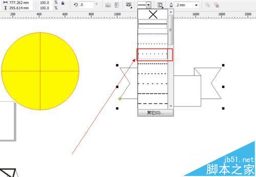 5、如圖所示,在彈出的下拉列表菜單中,我們點擊箭頭所指的這個虛線類型。