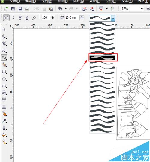 4、如圖所示,我們在彈出的下拉列表菜單中,我們點擊箭頭所指的一種筆刷。