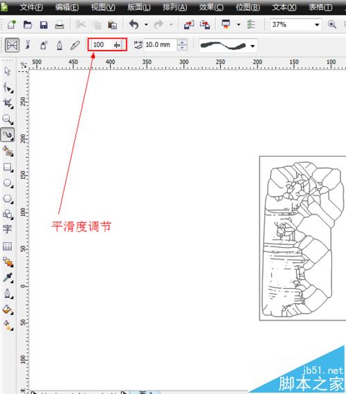 5、如圖所示,我們調節(jié)箭頭所指的數(shù)字可以調節(jié)筆刷的畫出來的平滑度。