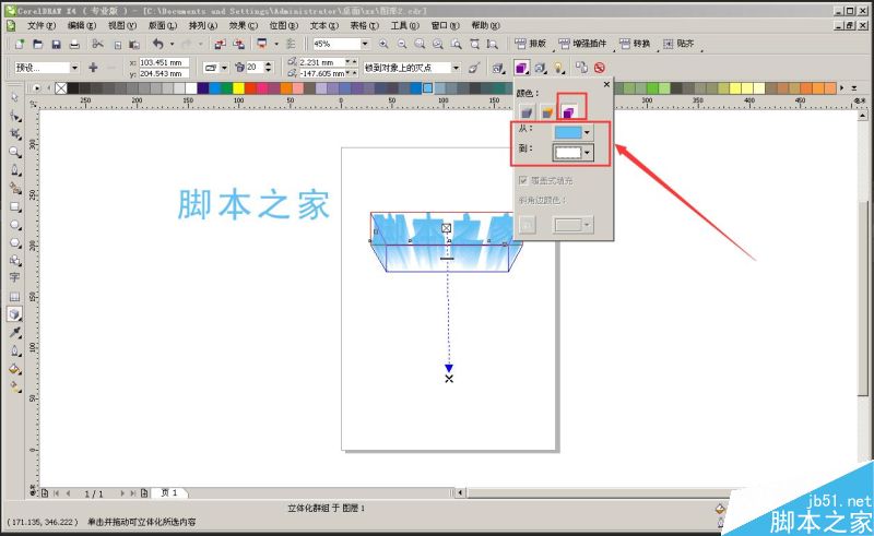 4、修改立體文字的漸變顏色,改成藍色到白色