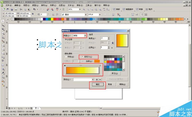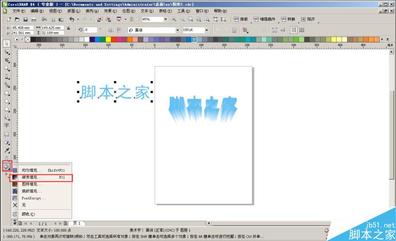1、 打開coreldraw X4軟件,輸入所需要的文字。這里以“武林網”為例,顏色填充藍色,并復制一個,以備后面所用;