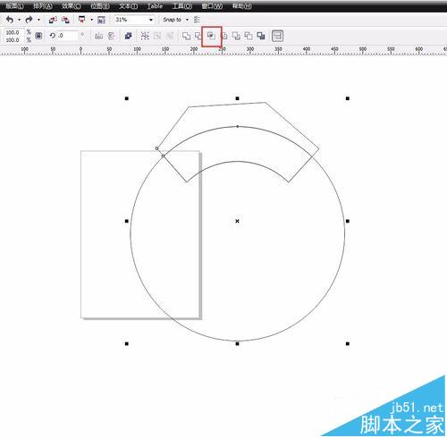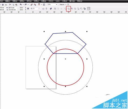 6、刪掉小圓,全選,點(diǎn)擊“相交”圖示