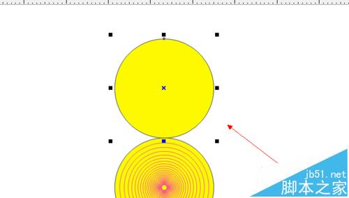 2、如圖所示,我們點擊箭頭所指的的黃色,為我們的正圓填充一個黃色。
