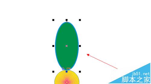 15、如圖所示,我們用挑選工具,雙擊一下這個綠色的花瓣,之后我們對箭頭所指的圓點進行移動。
