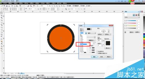 3、這一步是把圓的描邊變粗一點 變的明顯點 雙擊右下角的黑色方框,出來輪廓筆對話框