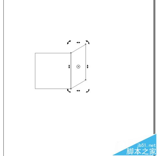 4、再點擊一下右邊的長方形,使這個長方形出現8個調節點來,并用鼠標放在右邊的邊的外面,然后按著鼠標往上拖,把長方形拖成平行四邊形。