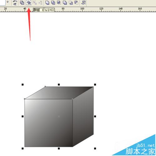 14、將整個正方體都選擇上,再點擊“群組”,對所選對像進行群組。