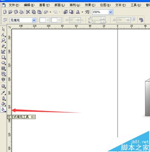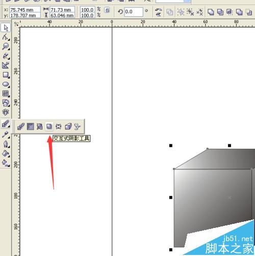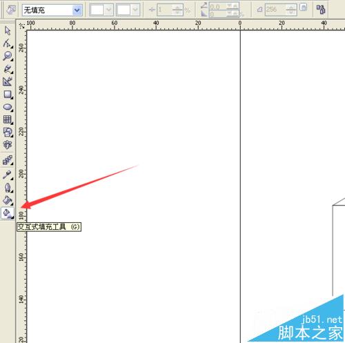 22、選擇“交互式充填工具”,在剛長畫出的長方形上,從右下角到左上角拉出線性填充來。