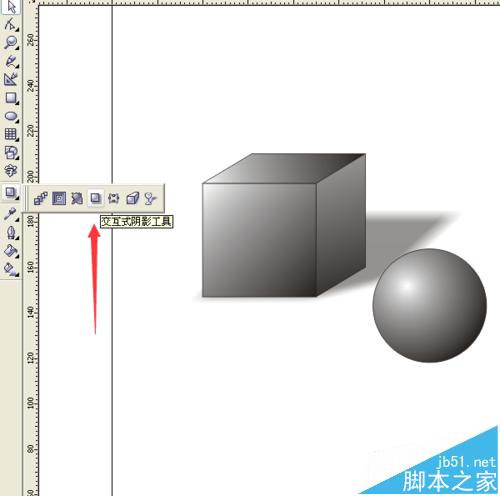 15、選擇“交互式陰影工具”,從正方體的底向右上角拉出一個陰影來。