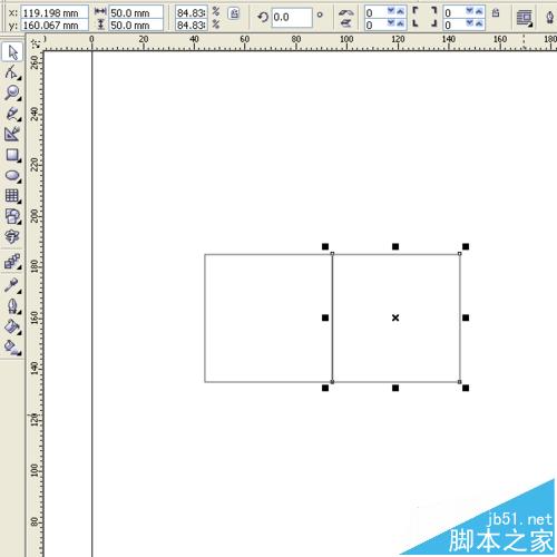 1、在電腦上打開CorelDRAW軟件,用矩形工具,畫一個邊長為50mm的正方形。