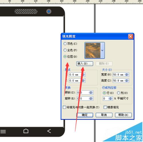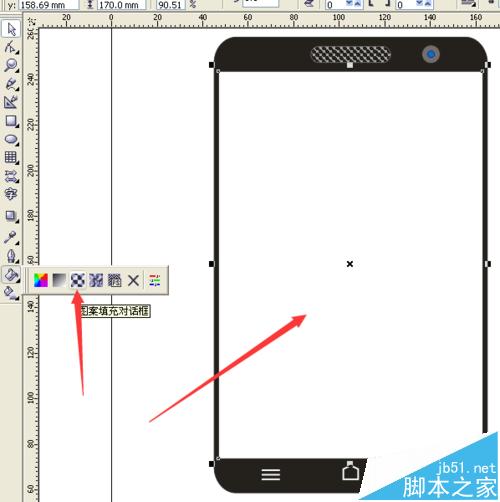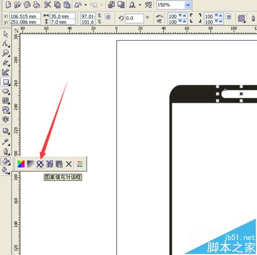 18、用挑選工具選擇白色長方形,再點擊擇填充工具,再選擇圖案填充對話框。