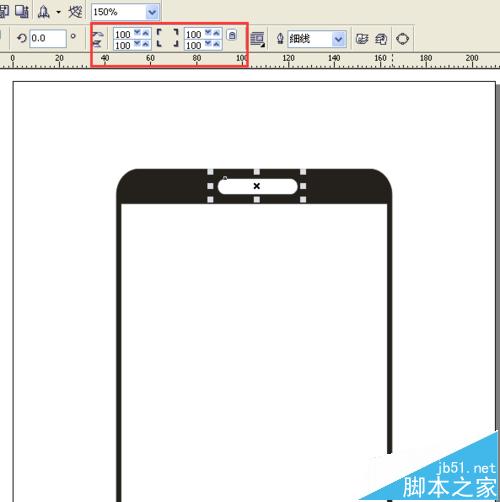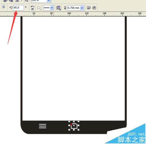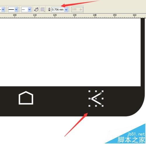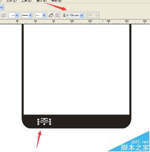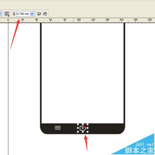 12、在手機的下邊,畫出三橫做為手機的菜單鍵,設置這三橫的輪廓為0.706mm,并填充為白色。