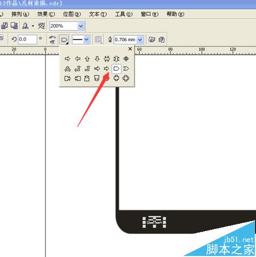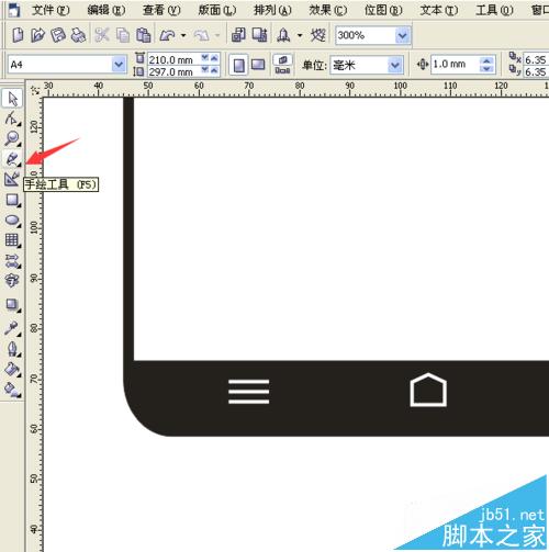 16、選擇手繪工具,畫出返回鍵,設置這個返回鍵的輪廓為0.706mm,并填充為白色。