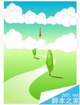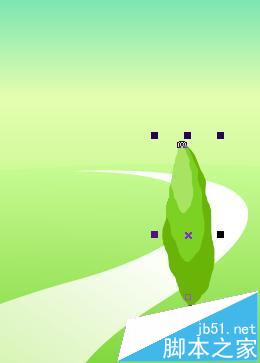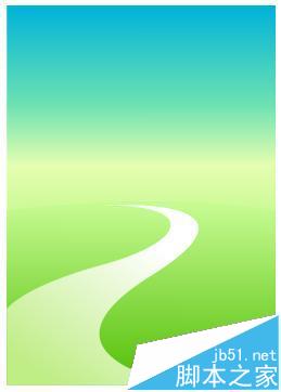 3、使用貝塞爾工具繪制路形狀,注意圓滑節(jié)點,填充淺綠到白色漸變,如圖所示。