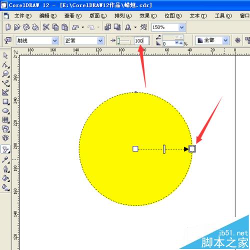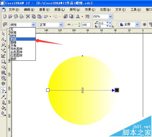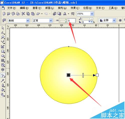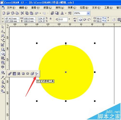 5、選擇”交互式透明工具“,從圓心往右拉出一個(gè)填充來(lái)。
