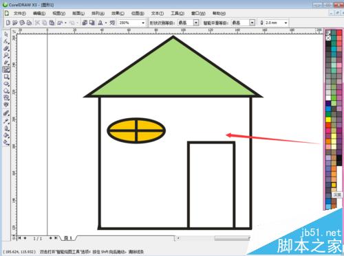 6、房子繪制完成后,可根據(jù)自己顏色的喜好通過CMYK調(diào)色板為房子每個部位填充顏色即可。