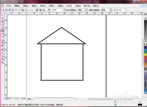 CorelDRAW X3中的【智能繪圖工具】是可以將用手繪制的手稿痕跡智能性的轉(zhuǎn)換成相似的基本圖形和曲線的,即可做到快速的作出各種圖形。下面是小編使用【智能繪圖工具】繪制的一個房子的過程。