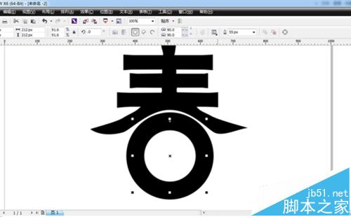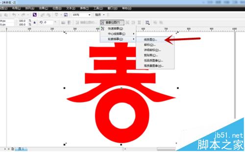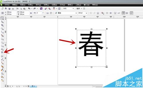 3、將文字“春”調(diào)整到合適大小,按鍵盤上“Ctrl+Q”鍵將其轉(zhuǎn)換為曲線圖模式進(jìn)行編輯。