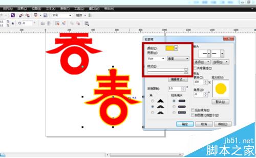 8、選中生成的線條圖,按“F12”快捷鍵調(diào)出“輪廓筆”工具,調(diào)整圖形的邊緣顏色和粗細(xì)程度。