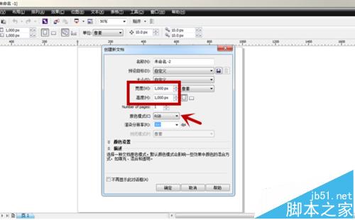 1、首先,打開CorelDraw軟件,新建一個1000*1000像素的RGB白布背景。