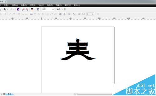 5、重新用文字輸入工具輸入一個“O”,并將其轉(zhuǎn)化為曲線圖,用上述方法調(diào)整它的大小和形狀,并移動到合適的位置,合并成一個圖形,如圖所示。